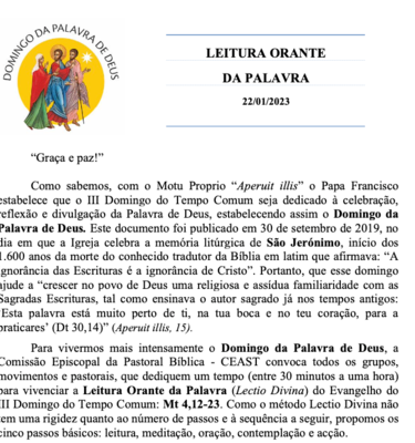 Die Gemeinschaften werden einen Weg finden, diesen Sonntag feierlich zu begehen. Wichtig ist jedenfalls, dass die Heilige Schrift während der Eucharistiefeier inthronisiert werden kann, um der Versammlung der Gläubigen den normativen Wert des Wortes Gottes zu verdeutlichen.